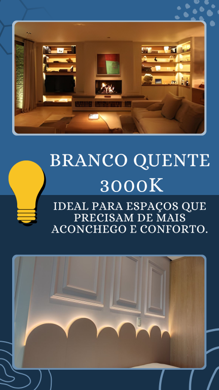 Também oferecemos fitas LED de alto desempenho, ideais para efeitos indiretos, sancas, móveis e detalhes arquitetônicos, com versões em diferentes temperaturas de cor e intensidades. Para acabamento e direcionamento perfeitos, contamos com perfis de alumínio que garantem proteção e um visual sofisticado para a instalação das fitas.
